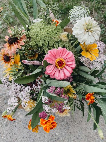 Bring our gorgeous summer and fall flowers home with you! Our flowers are fresh cut and arranged into beautiful garden-style bouquets just for you! From achillea to zinnia, we grow a wide variety of ever changing specialty summer and fall blooms that will continue to surprise you all the way until November.